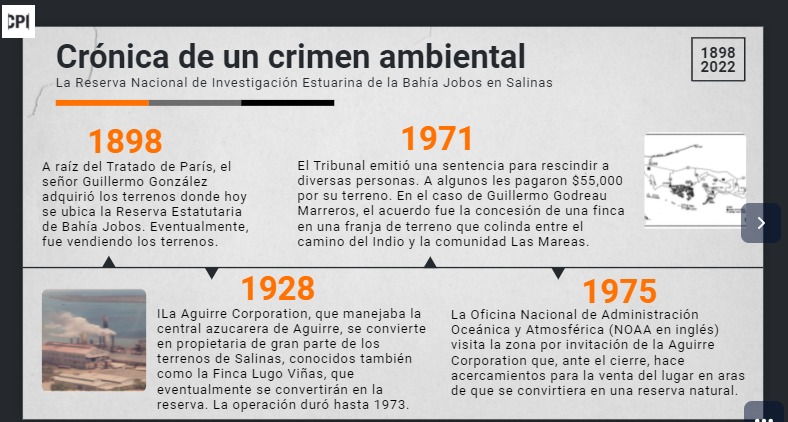 Por décadas, un crimen ambiental ha estado ocurriendo en la Reserva Bahía Jobos en Salinas ante los ojos de muchos e implica a múltiples ramas del Gobierno de Puerto Rico y del Gobierno federal que han sido consistentemente negligentes en el descargo de sus funciones, reveló una investigación del Centro de Periodismo Investigativo (CPI). Se trata de la ocupación y construcción ilegal, la deforestación de mangles, el relleno de humedales y las descargas sanitarias al mar en un área de alto valor ecológico de la zona marítimo terrestre.